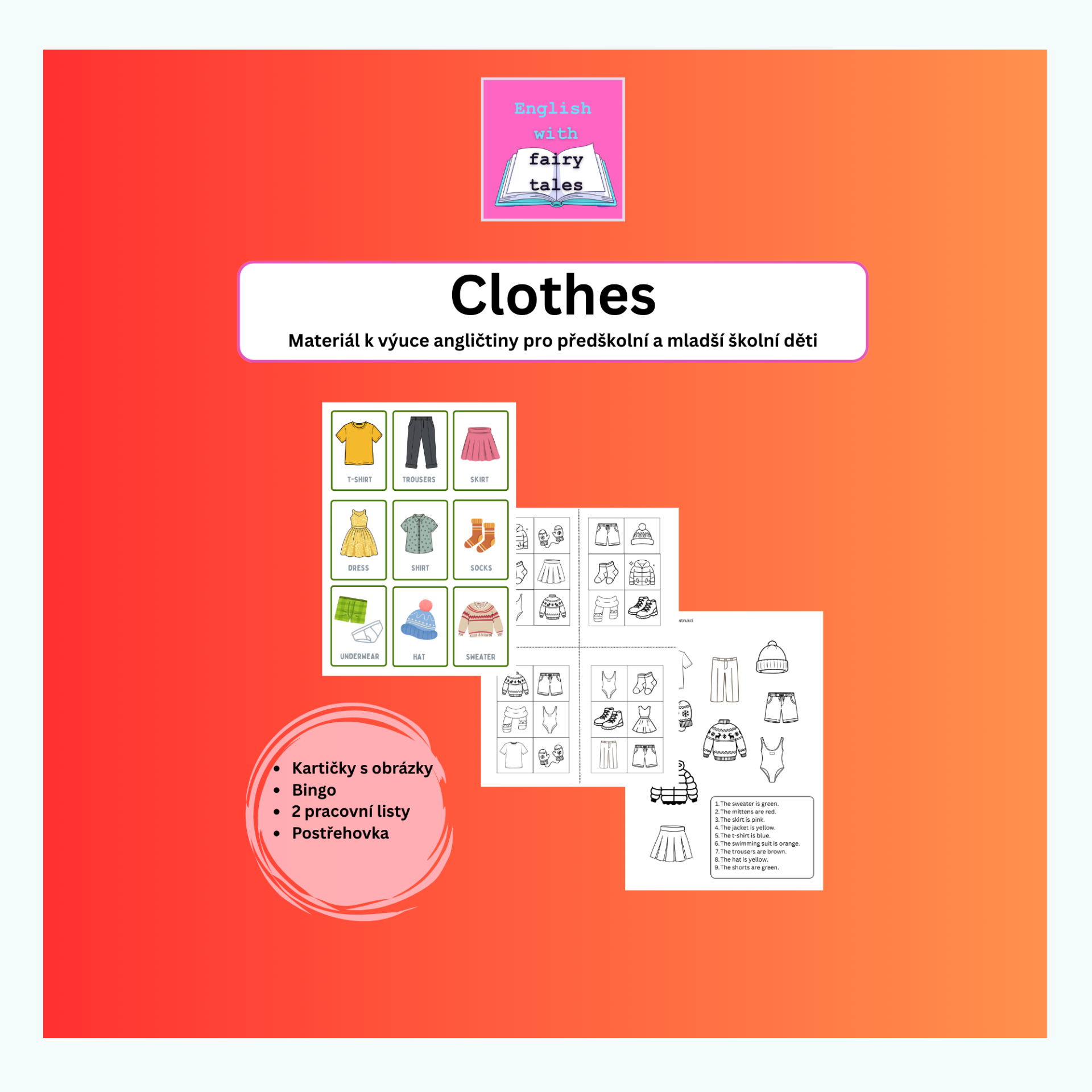 Materiál slouží k výuce angličtiny pro děti předškolního věku a mladší děti školního věku. Materiál pomáhá k hravému učení angličtiny s obrázky.