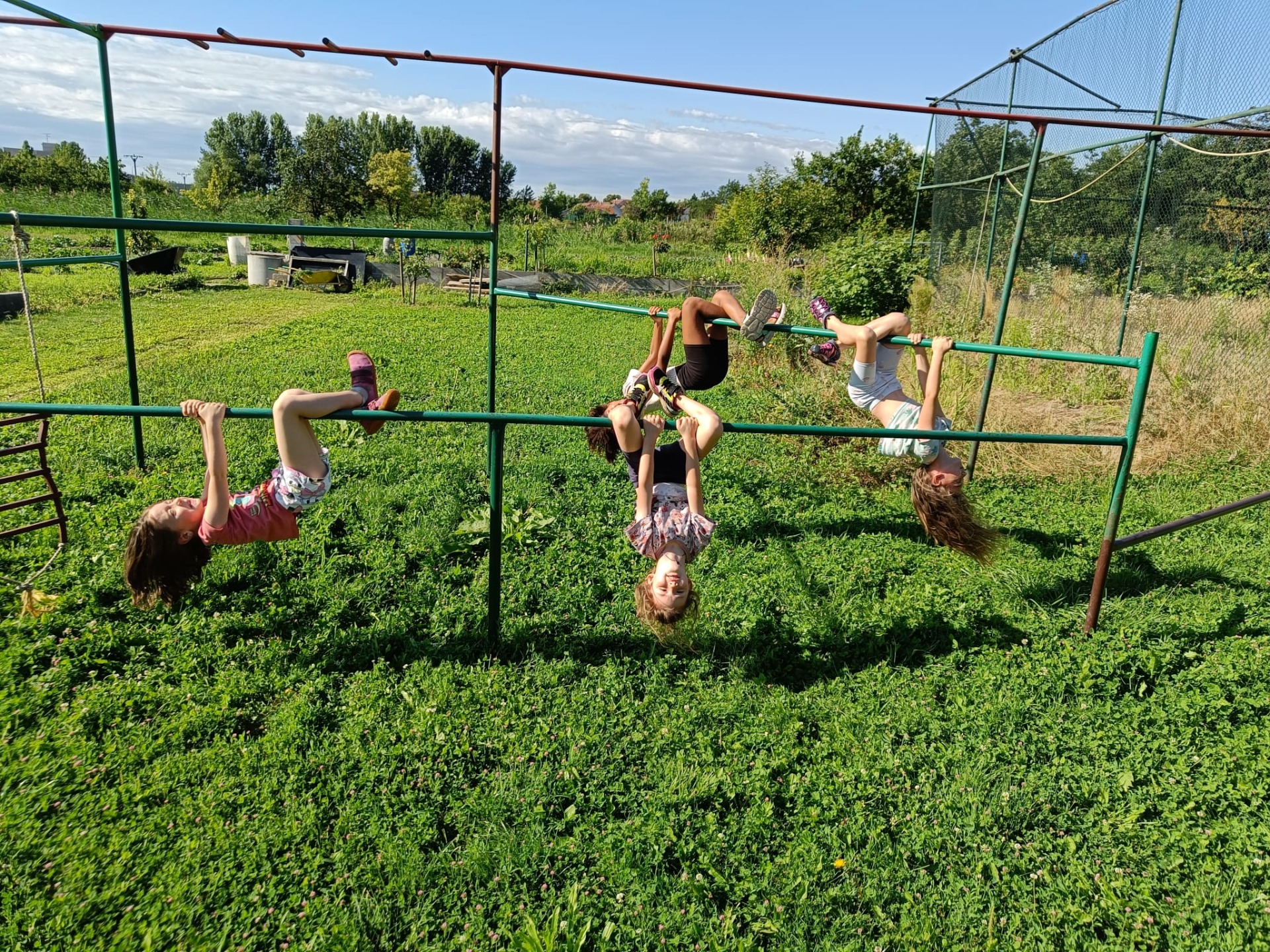 Příroda a prostor – zahradní klub uprostřed velké zahrady s vlastním dětským hřištěm. Děti jsou většinu dne venku.